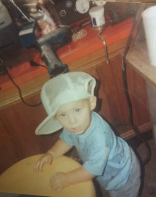 Captured in this image is a youthful Shawn, “aiding” in an ultraclave repair in his grandfather's workshop.